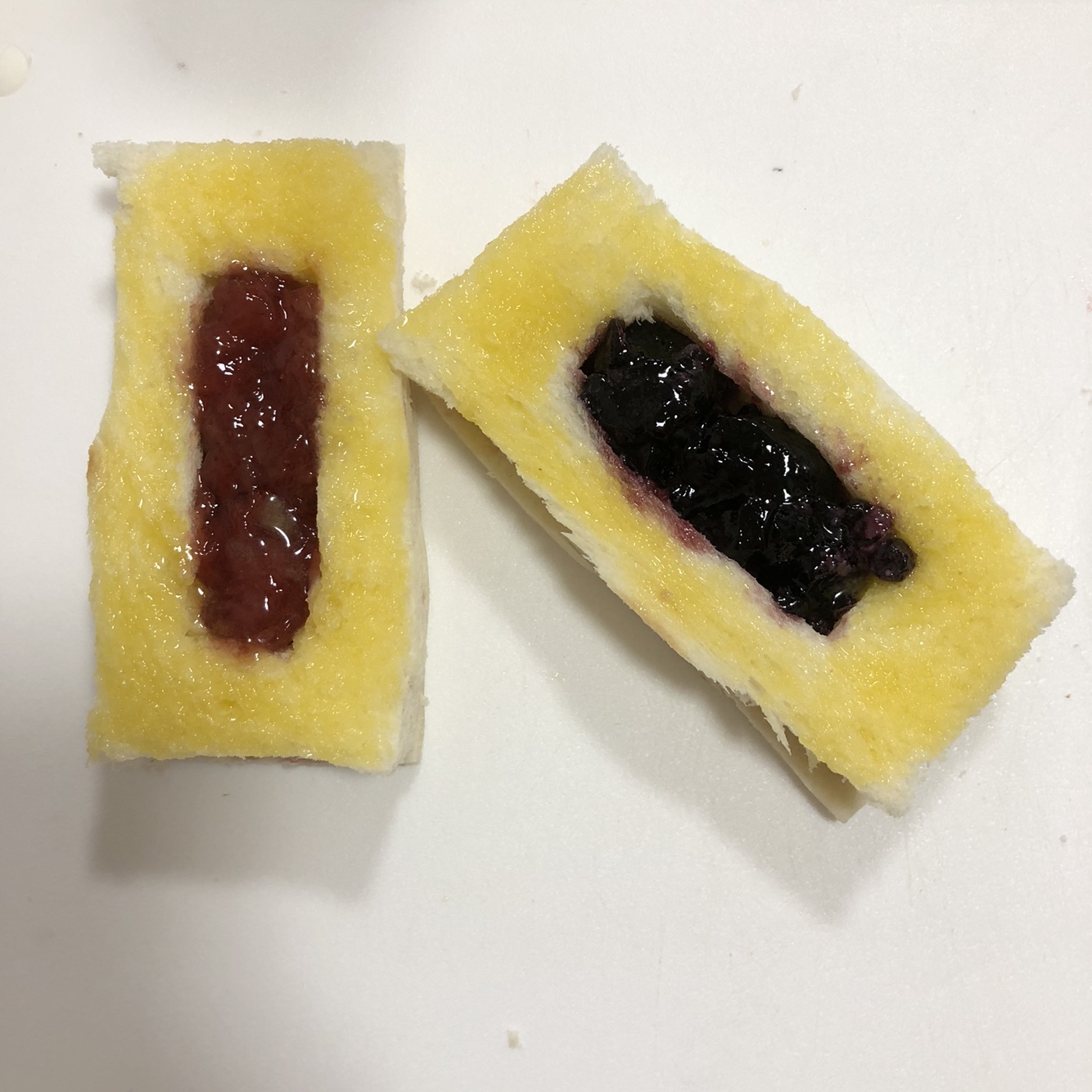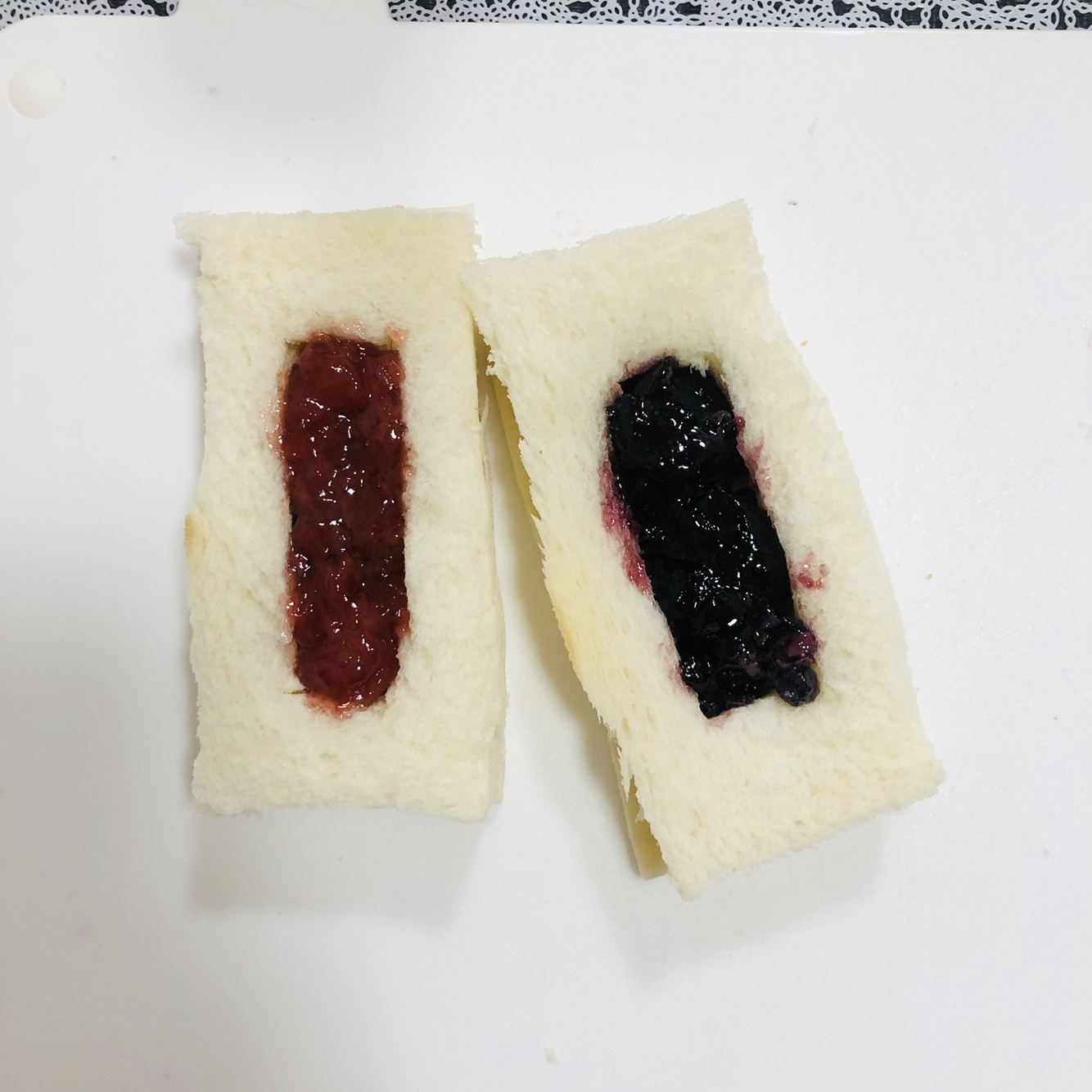 2. 직사각형으로 잘라 주신 후, 식빵에 잼이 들어 갈 수 있는 자리를 칼을 이용해서 잘라주세요.