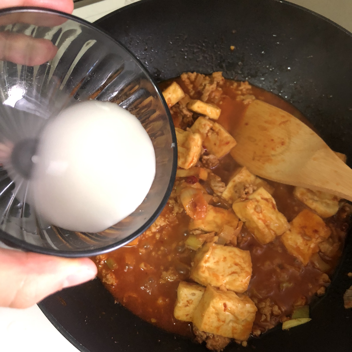 5. 두부를 넣고 전분물 ( 전분 1스푼, 물 1 스푼)을 넣고 원하는 원하는 농도에 맞춰